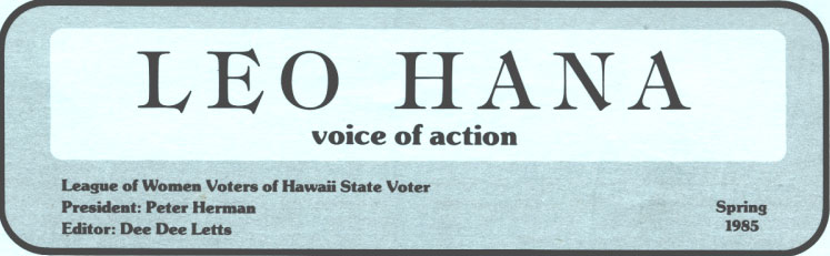 Legislature: Triumphs Looking for HelpLegislative lobbying is a vital activity of the League of Women Voters State Board. Each year, the State Board Legislative Committee ( this year chaired by Marion Saunders) puts a concerted effort into lobbying for, tracking and testifying on a variety of issues relating to League positions. Much of the respect that the Legislature accords the LWV is a result of the time and effort put into the development and presentation of well thought out and relevant testimony. An important example of the League's efforts in the legislative arena is its recent testimony against a bill which would reduce the age at which a youth could be referred to adult court to 14 years . The LWV had repeatedly testified in past years against such an age reduction and this year's testimony given by Chair Saunders was no less adamant against such a bill. Saunders told members of the House Committee on Human Services that passage of the bill would have "no positive results. A youth at age 14 is not an adult, physically, mentally or psychologically. Although they may have been engaged in criminal activities beyond their chronological years, they do not have the developmental or experiential resources an adult would have to make judgments and to assess situations." Citing that the adult rehabilitation system is being sued for "inhumane treatment of the adults under its jurisdiction," Saunders questioned whether youths should be sent to such a system for rehabilitative services. She testified, "Youthful offenders by definition are in need of education, vocational and counseling services. They need to develop social skills to understand and participate in society. Years of inactivity and victimization by fellow inmates are no answer to their problem. The Youth Correctional Facility, with all its shortcomings, has much more to offer youths than the adult system." The League also testified this session on Initiative, Campaign Spending, Comparable Worth and funding for Coastal Zone Management. The State Board Legislative Committee is looking for "a few good women" (to steal a phrase) to organize and help with the next legislative session. Says Saunders, "Preparing and following the legislature is a time consuming and difficult job which has many rewards for League members individually and as a whole. Often this area is not adequately followed due to a lack of person power and the short, intense nature of the Legislature." "If we start early, we should be able to adequately cover the next legislative session." Members interested in working on the next session should contact the League Office at 531-7448 and leave their names.