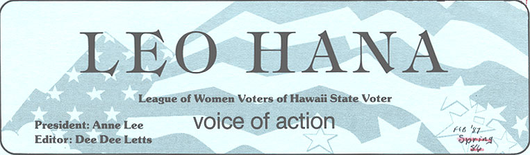 People in the community who know that I am involved with the League frequently say to me, around election time, "You must be really busy now with elections." I reply, "Yes, were really busy trying to get voters and candidates to focus on the issues!" After the election they usually say to me, "Well, I bet you are looking forward to a rest!" I reply, "No, now the hard work begins - translating issues into solutions, working with the legislature, the administration, the agencies and the citizens to bring about meaningful change!" This is where we are now. The elections are over and now the hard work begins. The League is a non-partisan but very political organization. We are a group that believes in government of the people, by the people and for the people. In order for that still revolutionary concept to work, it takes informed citizens who are active participants in government affairs. That is what the League has been doing for 66 years. We're political, but non-partisan participants. We lobby, we litigate, but only on issues that we have studied and come to some reasoned agreement as to solutions. We are a multi-issue group and we know that there are no simple solutions to most problems. We are not afraid to tackle difficult issues, The first piece of legislation the League took on was the passage of the Shepard-Towner Act in 1921. Our most recent national issues were tax reform and national security and Senator Packwood recently commended the League for building the constituency for tax reform and seeing it through compromise and completion. We are in the halls of Congress on clean air, clean water, sensible defense, adequate funding for the poor and foreign trade issues. We are at the Hawaii. legislature on juvenile justice, land use, and reapportionment issues. We are at City Hall on planning and zoning, transportation and charter issues. And now we are educating ourselves and the public on education issues. In my job as a national board member, I travel across the country frequently. Knowing the Hawaii League was embarking on a study of education, I was struck by the number of times education surfaced as a campaign issue all across the country. There seemed to be no clear message of, "if I am elected here is what I will do....". Rather they simply said, "We've got to do something about the public school situation." I find the absence of a magic bullet comforting. This says to me that the opportunity for creating community consensus is indeed timely. It is our hope that our study of education will be the beginning of community understanding and agreement on new directions for education. We will all need to create a constituency for creative change. Pat Shutt