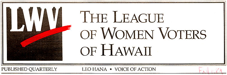 President Sandra Duckworth focused on LWV of Hawaii's major issue item in her "Viewpoint" delivery of August 27th.