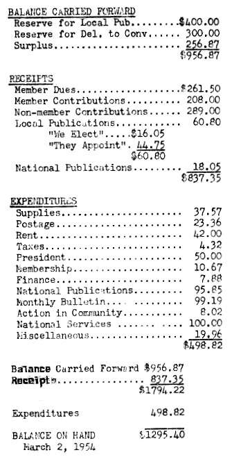Report of Treasurer - March 2, 1954