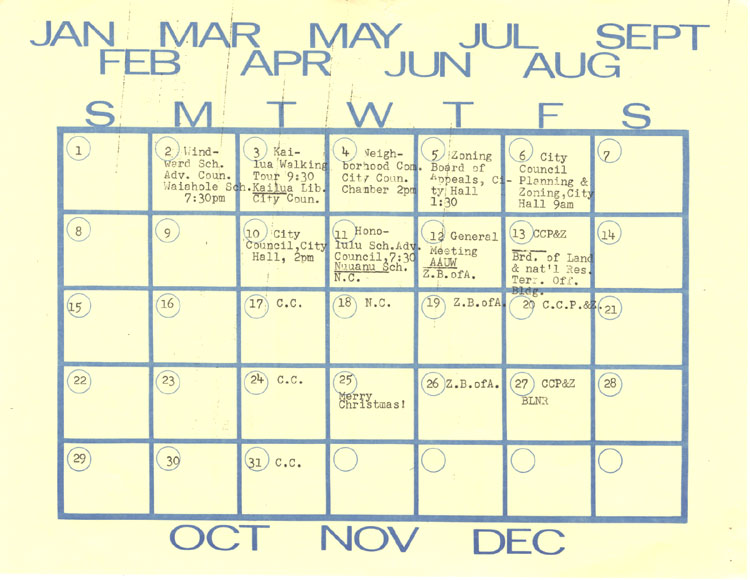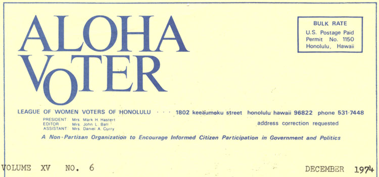National Land Use Consensus Calendar President's Notes (Diane Hastert) Note for Action League Action Service Ugly Kailua? League Testifies New General Plan for Oahu (General Plan Revision Program) |